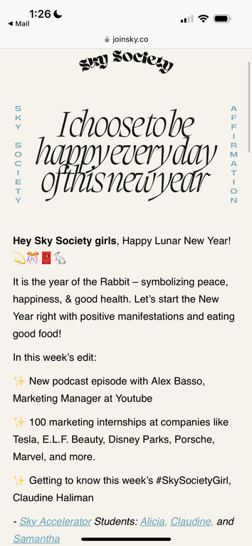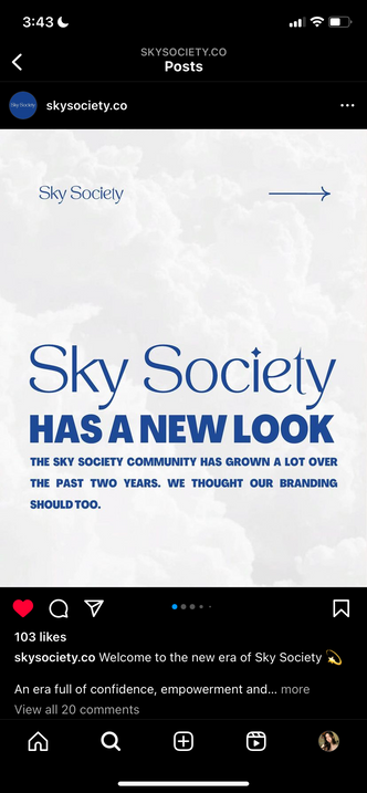 Assist in current rebrand of Sky Society's website and Instagram by creating user personas, performing competitive analyses, and discussing Brand Guidelines.
